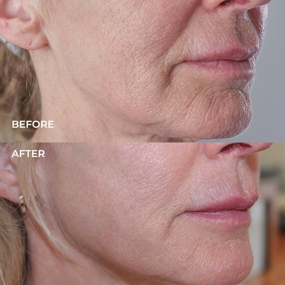PROTOCOL: PDO threads to upper perioral area and lower cheeks with M-SEQNC Serum twice daily (AM/PM) and 0.5mm dermaroller. M-SEQNC Multi-Action Cream twice daily (AM/PM)