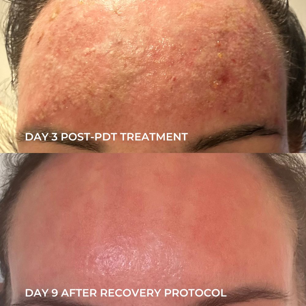 Day 4 after PDT, topical application of 2 Billion of B-SEQNC Lyophilized Exosomes. Starting day 4 to day 9 and ongoing B-SEQNC Multi-Action Cream applied 2/3 times daily.